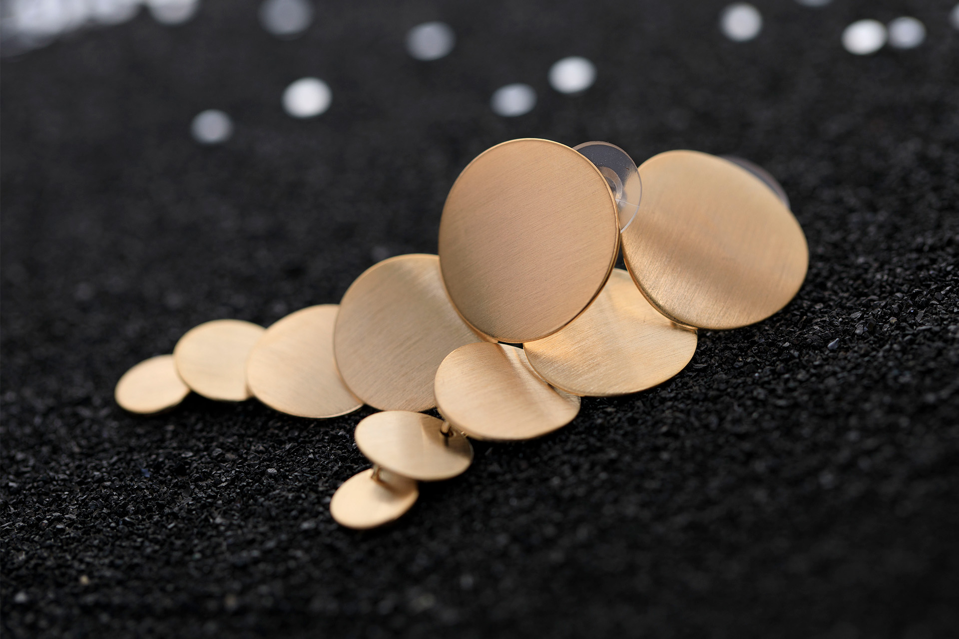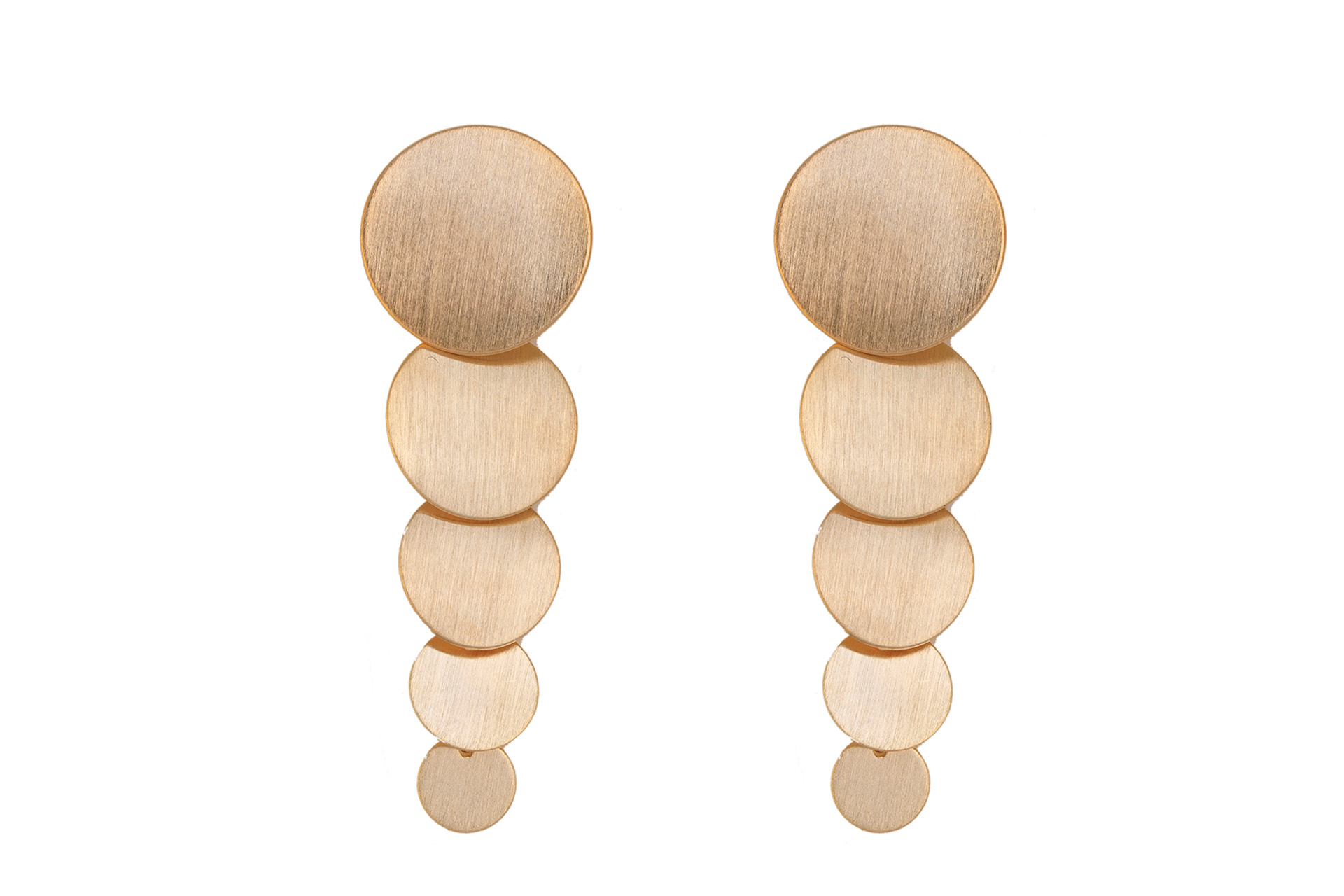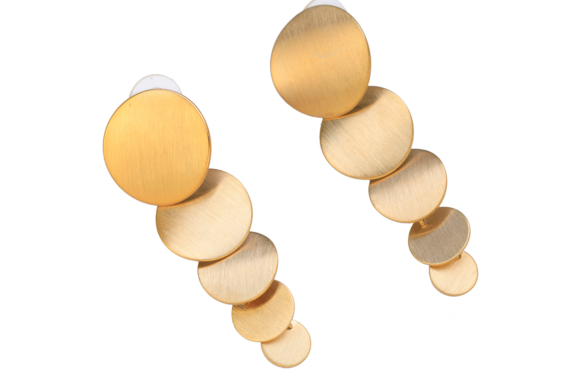 Boucles d’oreilles géométriques composées de plusieurs ronds dorés mats brossés. Longueur env. 7 cm Acier inoxydable haut de gamme Très léger à porter