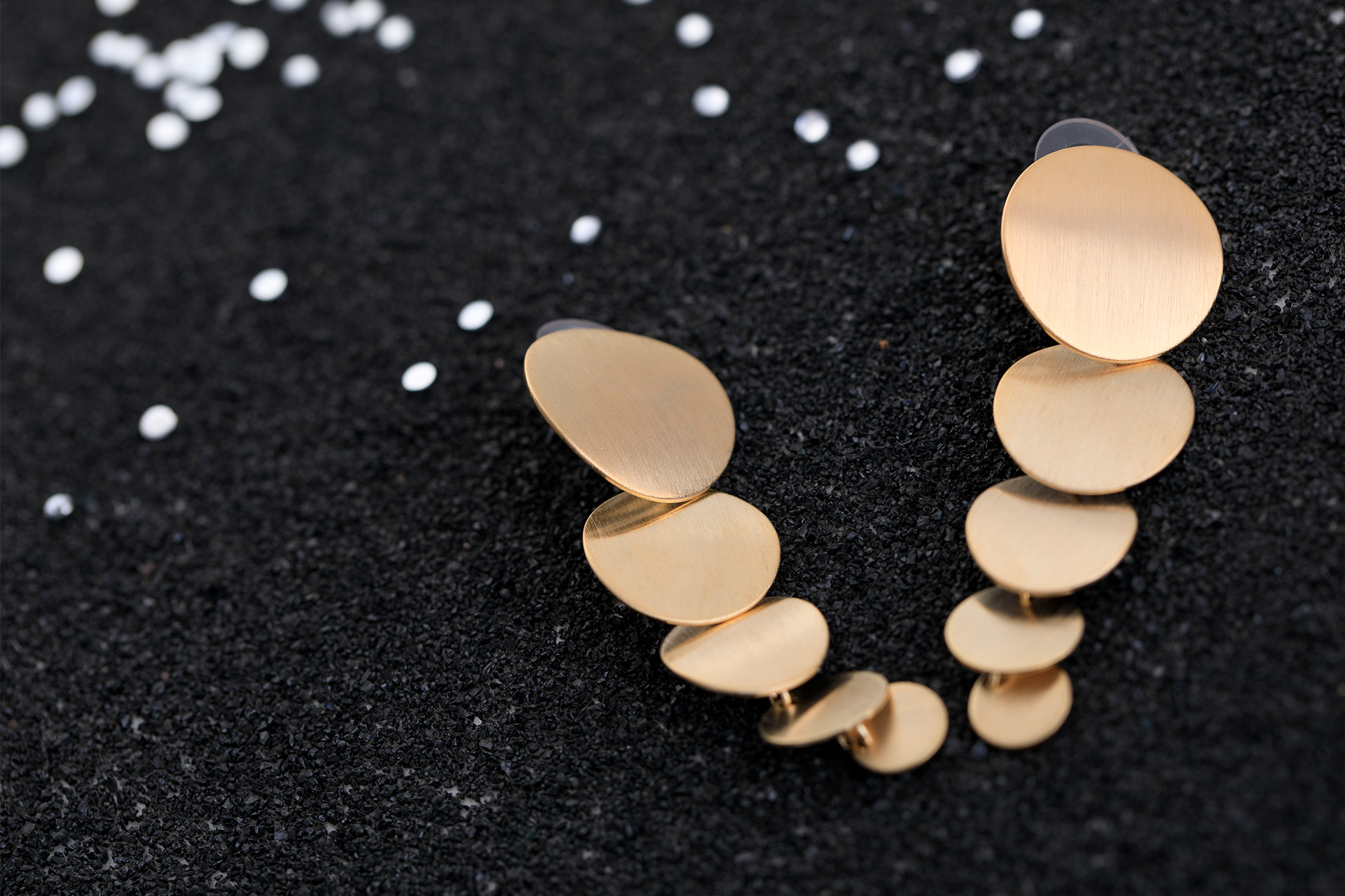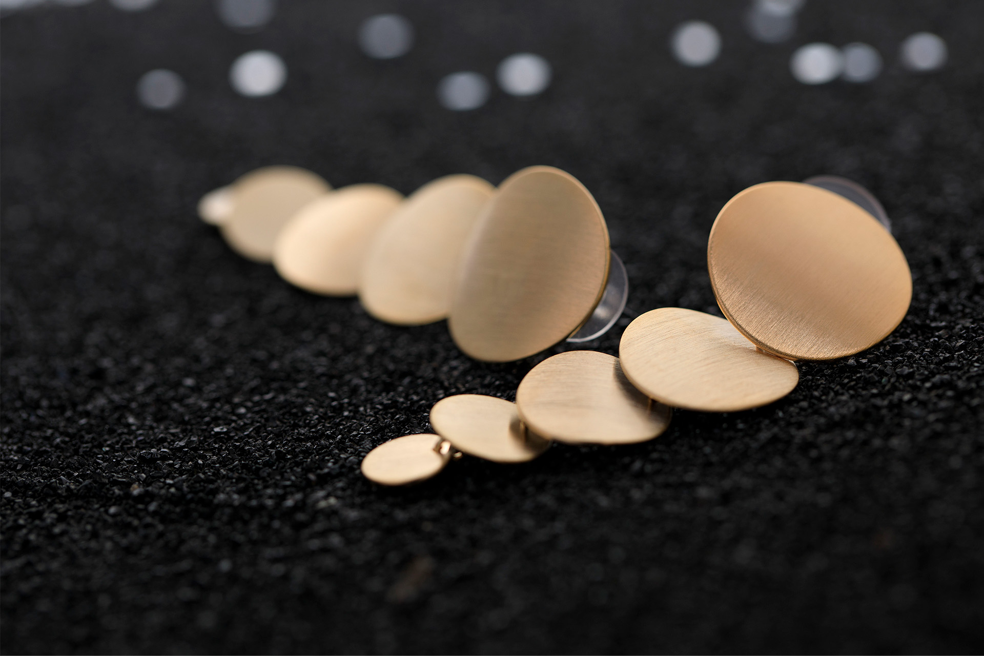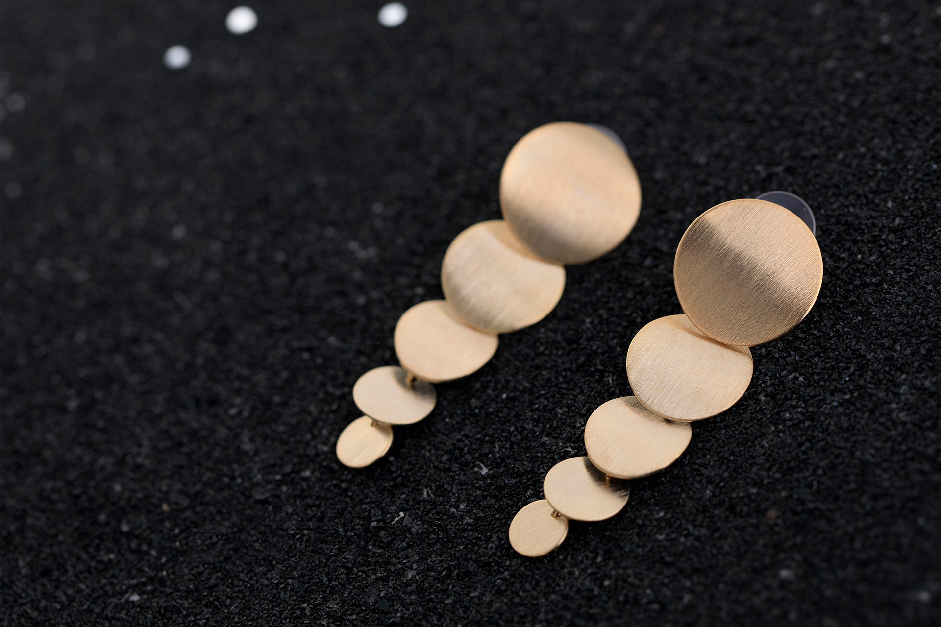 Boucles d’oreilles géométriques composées de plusieurs ronds dorés mats brossés. Longueur env. 7 cm Acier inoxydable haut de gamme Très léger à porter