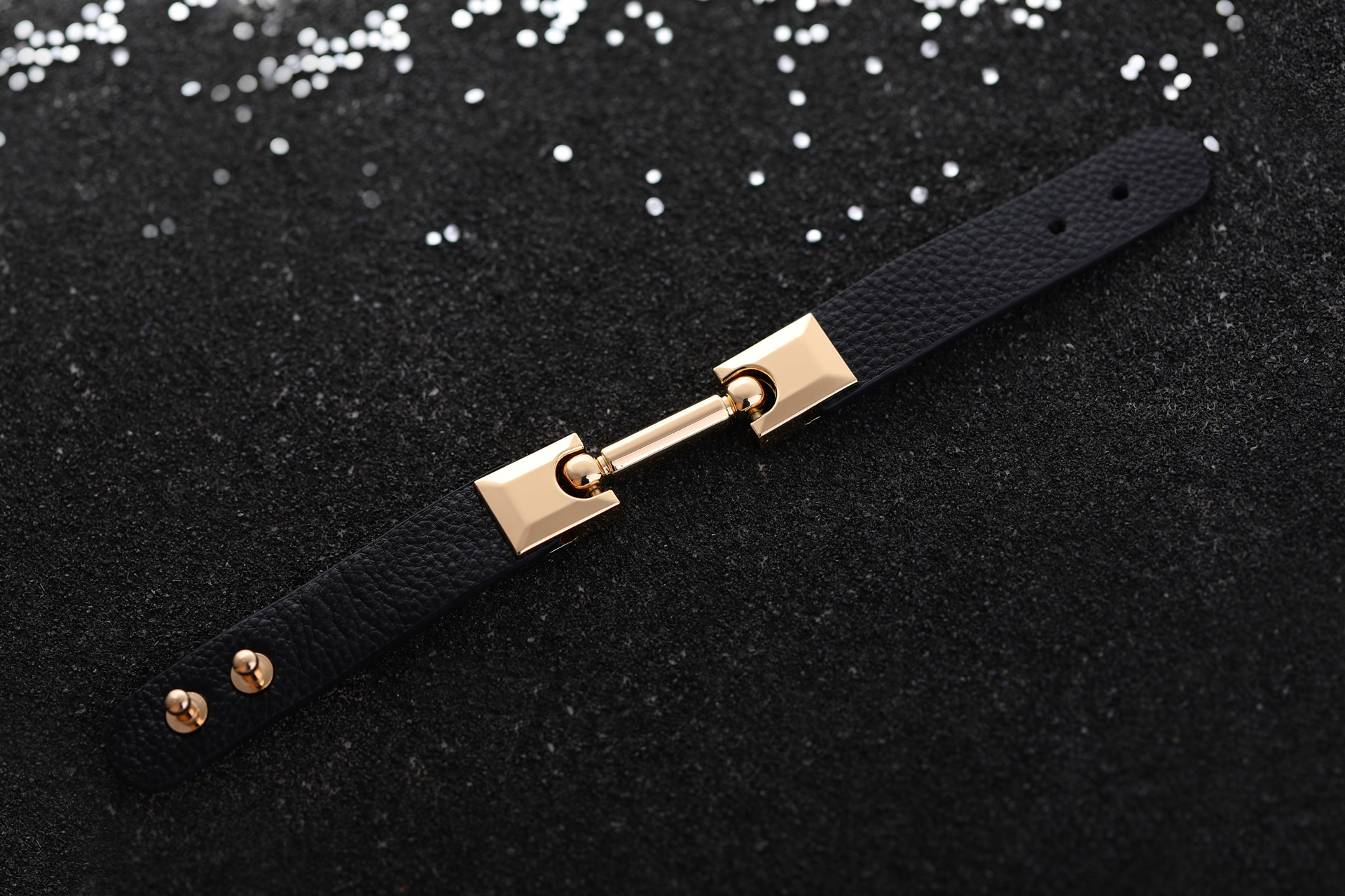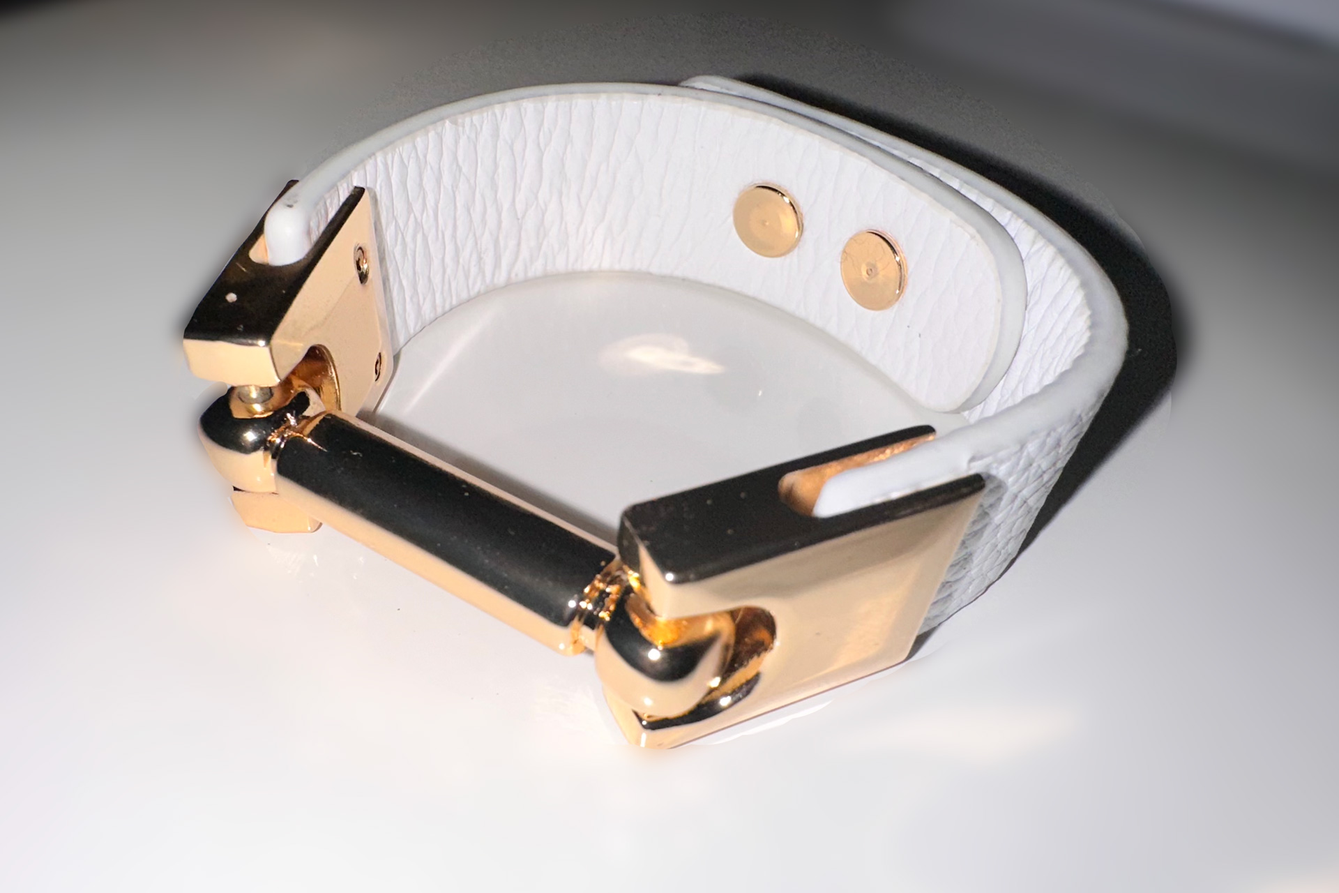 Ce bracelet en cuir noir ou blanc avec des détails en métal doré brillant est un accessoire élégant et haut de gamme. Le contraste entre le cuir noir et le métal doré donne au bracelet un aspect sophistiqué et moderne, en faisant un choix parfait pour ajouter une touche de style à n’importe quelle tenue.Avec une longueur totale d’environ 24 cm et un diamètre interne de 5,5 cm (pouvant être ajusté jusqu’à 6 cm), ce bracelet convient à la plupart des poignets et peut être ajusté. Sa légèreté le rend facile à porter toute la journée sans causer d’inconfort.Ce bracelet en cuir noir ou blanc et métal doré brillant est un choix polyvalent qui peut être porté pour toutes les occasions, des événements formels aux occasions plus décontractées.