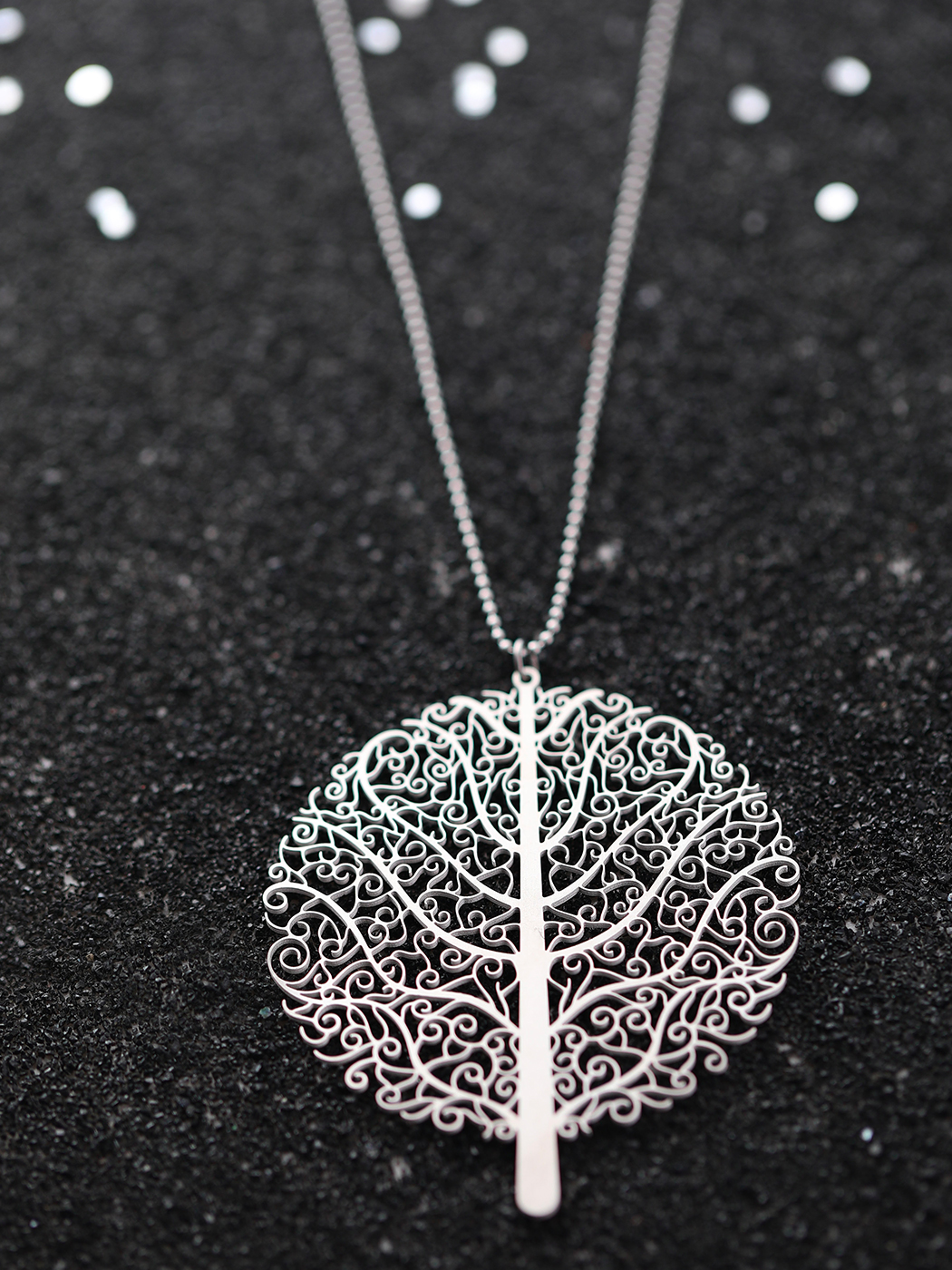 Une pièce très originale qui illuminera toutes vos tenues. 3 coloris pour assortir à vos envies! Acier haut de gamme Silver Longueur chaine env. 75 cm Diamètre du pendentif env. 6 cm