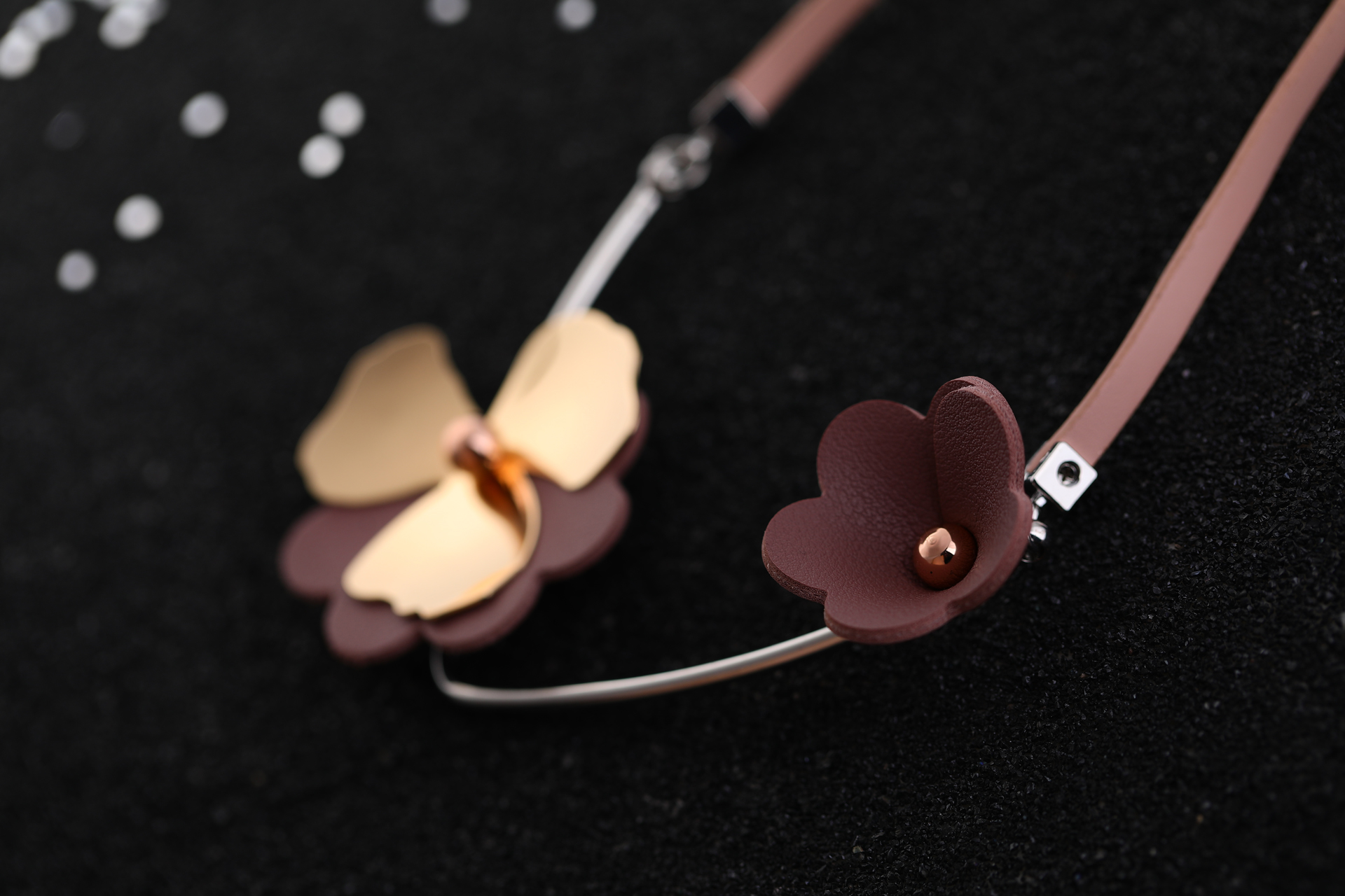 Les fleurs en cuir et en métal or sont très jolies et bien travaillées, avec un grand souci du détail. Deux modèles : avec la lanière rose et tige argentée ou marron noisette et tige dorée ajoutent une touche de sophistication, tandis que la longueur réglable permet de s’adapter à différentes tailles de cou. L’utilisation de l’acier inoxydable haut de gamme pour la fabrication de ce collier le rend très léger à porter, ce qui est un avantage pour une utilisation quotidienne. Avec une lanière d’environ 40 cm de chaque côté, ce collier peut être porté à différentes hauteurs, selon votre préférence.